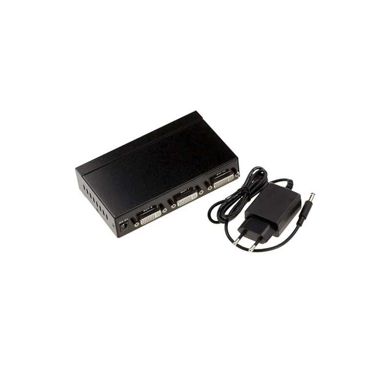 - Standard DVI 1.0 Compatible with HD signals up to a resolution of 2048 x 1036 Supports communications say full DCC2B bandwidth 1.65GHz the built-in amplifier Power supply included, can be used in 5 V cascade (please note if you put more signal splitters cascade the risk of loss in quality)