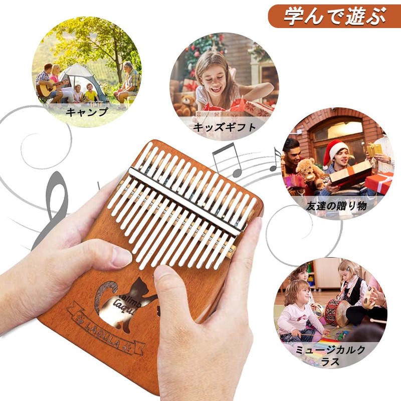 Kalimba 17 Keys Mahogany Thumb Piano Beginner Set, Tuning Hammer, Protective Case, Japanese Learning Instruction, Sheet Music, Katakana Scale Sticker, Gift for Children and Adults (Cats