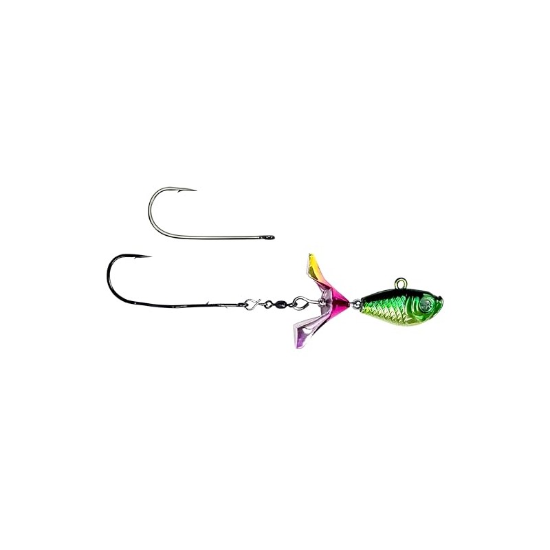 - Description| Seek and Destroy! The Kalin's Google Eye Tungsten Search Bait was designed to fish while using Electronics “Live technology” to cover water quickly and always have your bait in front of fish. Times are changing with advanced electronics and anglers need to change how we seek fish and fish different baits to destroy them! Seek Destroy is designed with a Tungsten jig head that features a custom spinner blade and a hook attached to a swivel. This feature gives your live bait or soft plastic on the back hook extreme action. | Hooks size is 2/0. | Slow death hook straight shank are interchangeable. | 1 Pack