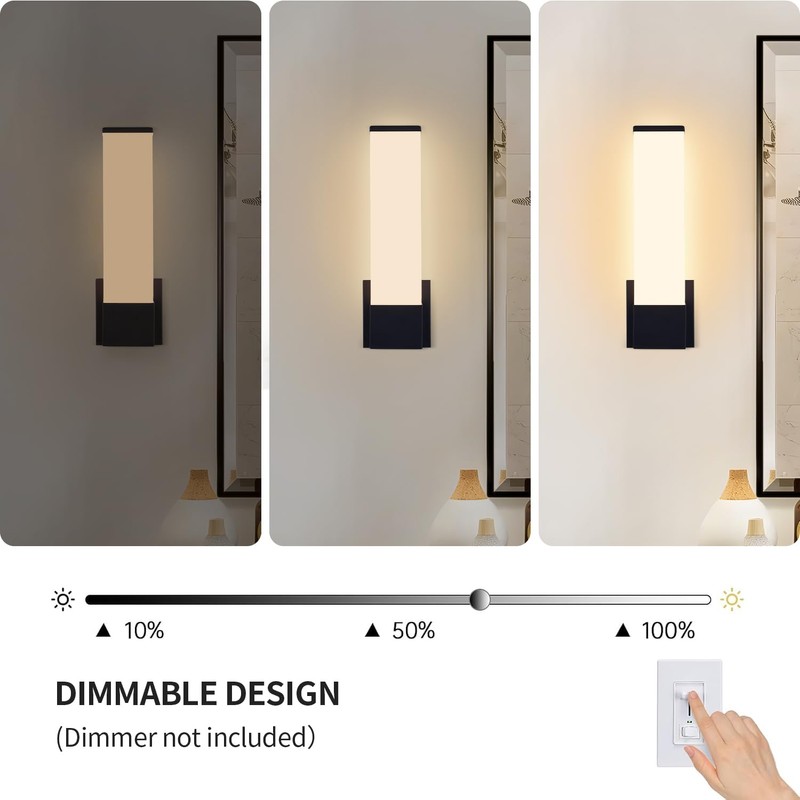 Kalium Modern Wall Sconces,Dimmable Black Wall Sconce, 3000K Warm White LED Indoor Sconces Lighting for Bathroom, Stairs, Living Room, Bedroom