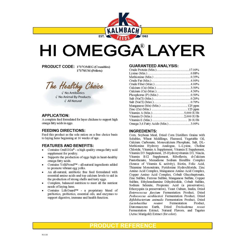 Kalmbach Feeds Hi Omega All Natural Layer Crumbles, 50 Lb