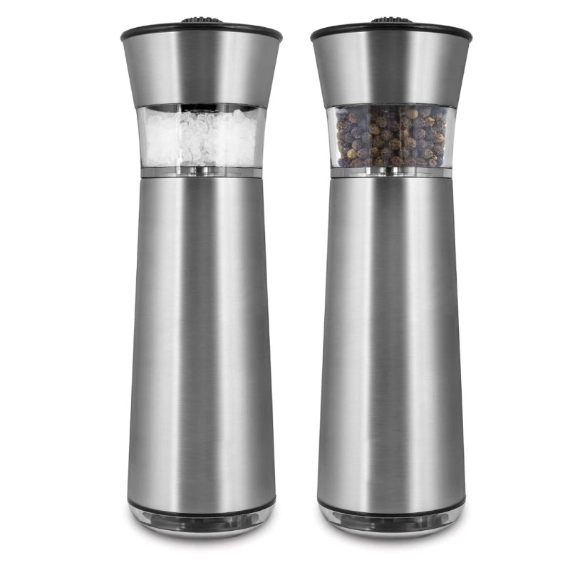 Kalorik Electric Gravity Salt and Pepper Grinder, PPG 44892, Automatic Stainless Steel Spice Grinder Easy Tilt and Grind, Stainless Steel.