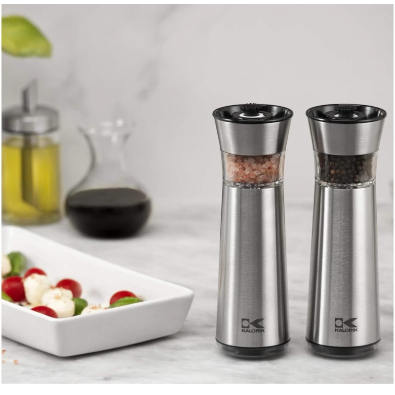 Kalorik Easygrind Electric Gravity Salt and Pepper Grinder Adjustable in Stainless Steel