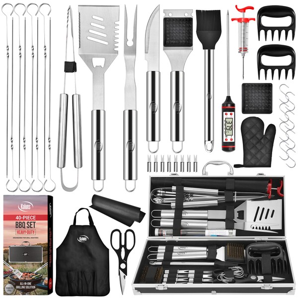 Kaluns BBQ Accessories, Complete Grill Set Dad Gifts for Fathers Day, 40 Pcs Premium Heavy Duty Stainless Steel Barbecue Grill Accessories for Outdoor Grill Gifts for Men Dad