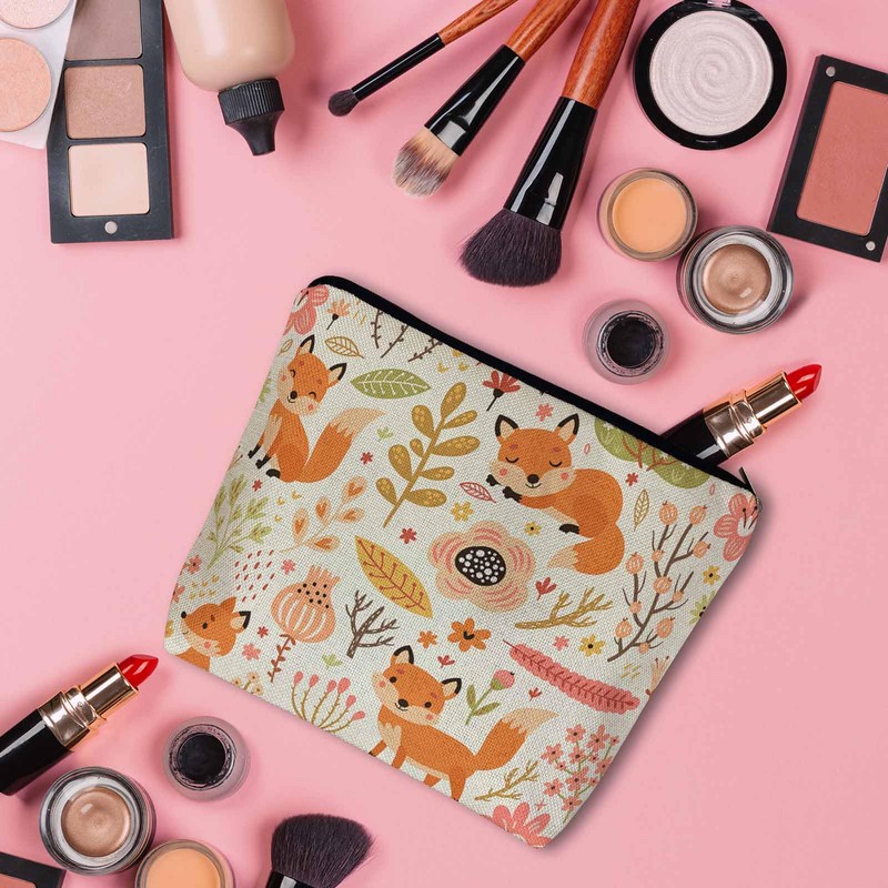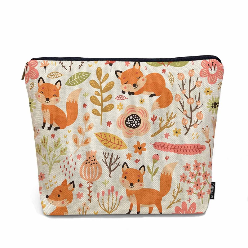 Kalygon Women Makeup Organizer Bag Fox Forest Animal Cute Fox Orange Flax Cosmetic Bag Makeup Bags Toiletry Bag Accessories Organizer Travel Bags For Home Bathroom Office Hotel Gym