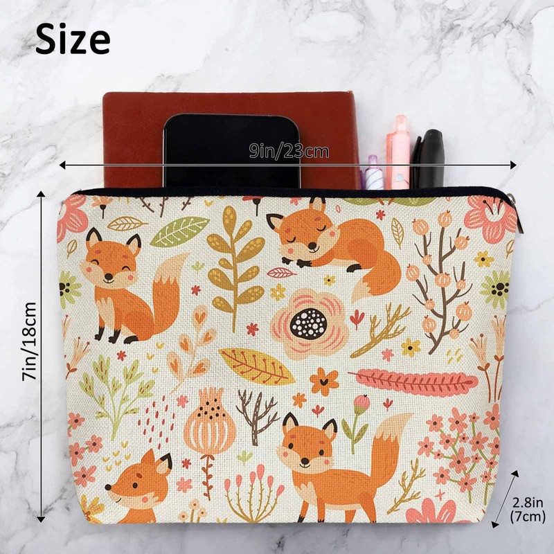 - 1 LARGE CAPACITY: Fox Makeup bag size is 9 x 7.1 inch/ 23 x 18 cm. The cosmetic bag is roomy and large enough to hold all your daily essentials; portable, placed in your handbag or suitcase