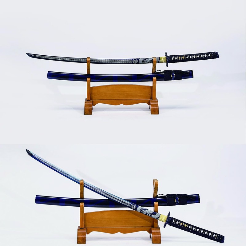 - This katana ,Double Blue Pattern design thus it looks irresistible. This beautiful katana is also suitable for collection or sending to your friends. Do not miss such a chance to show up in front of friends.