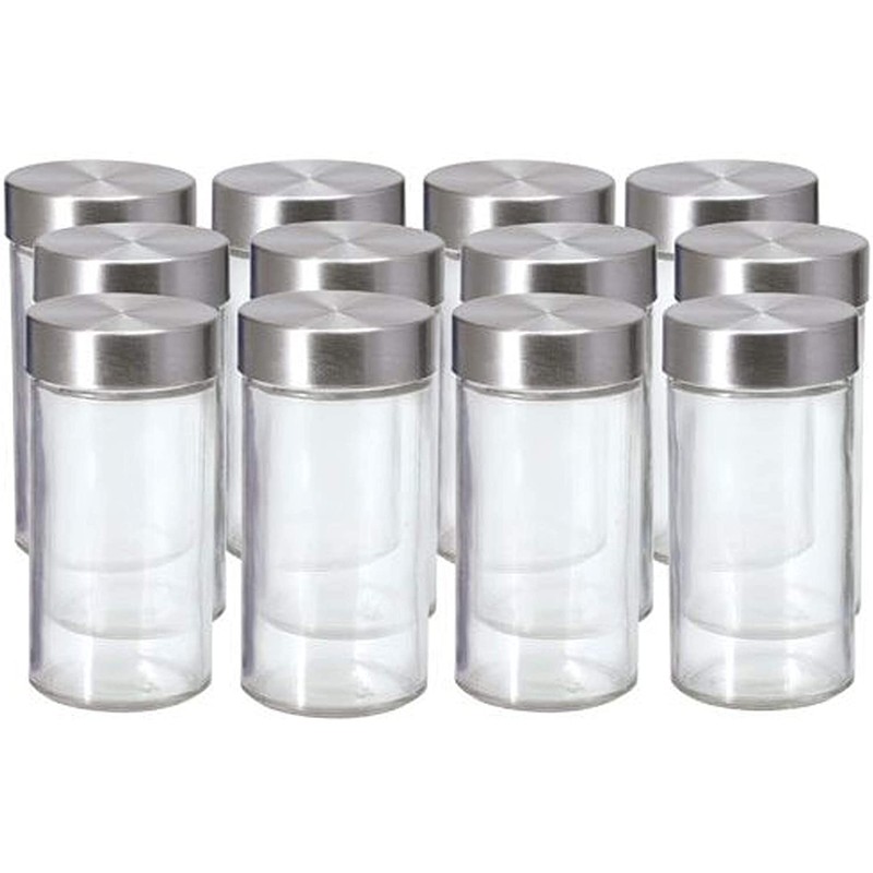 of glass, Each jar has a stainless steel cap with a sifter disc for sprinkling