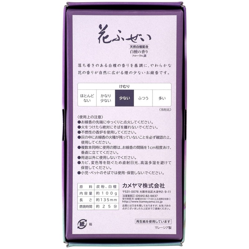Kameyama Flower Fuzei, Purple, Smoke, Approx. 3.5 oz (100 g), Incense Sticks ...