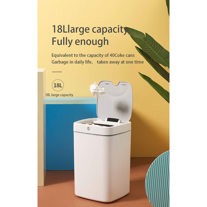 - ❖9 Major Upgrades Leading A New Era Interlligence Trash Can-Not only will it only automatically open and close. Automatic induction ,Touch sensing ,Sealing odor ,Long open function,Two ways of using ,Bass slow down,Sturdy ABS material ,Bag is not exposed ,18L large capacity .