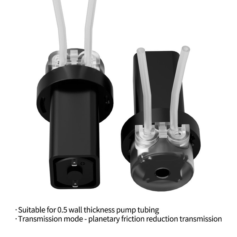 - Transmission: planetary friction reduction drive, 2 rotor transmission, suitable for pump tubing with a wall thickness of 0.5mm;
