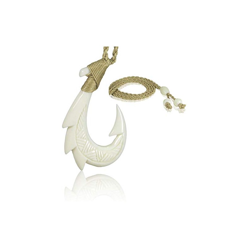 KanaKala Pacific Hawaiian Hand Carved Bone Fish Hook Necklace