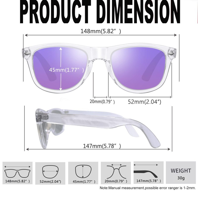- Suitable for Any Occasion: Clear frame sunglasses are suitable for running, driving, beach volleyball, traveling, cycling, fishing, vacation, hiking, and other outdoor sports. They are also suitable as a fashion accessory and everyday wear. The purple retro sunglass adapts to every face shape