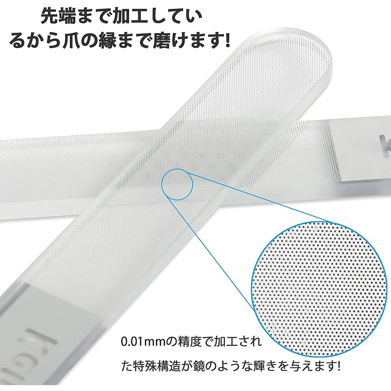 - [Special 0.0004 inch (0.01 mm) laser processed glass] Unlike conventional nail files and buffers, the glass material is processed with a precision of 0.0004 inch (0.01 mm). This means that it can polish more beautifully in less time! It's also easy to clean, just wash it under running water and dry. Since it comes in a dedicated storage case, you don’t have to worry that the glass may break.