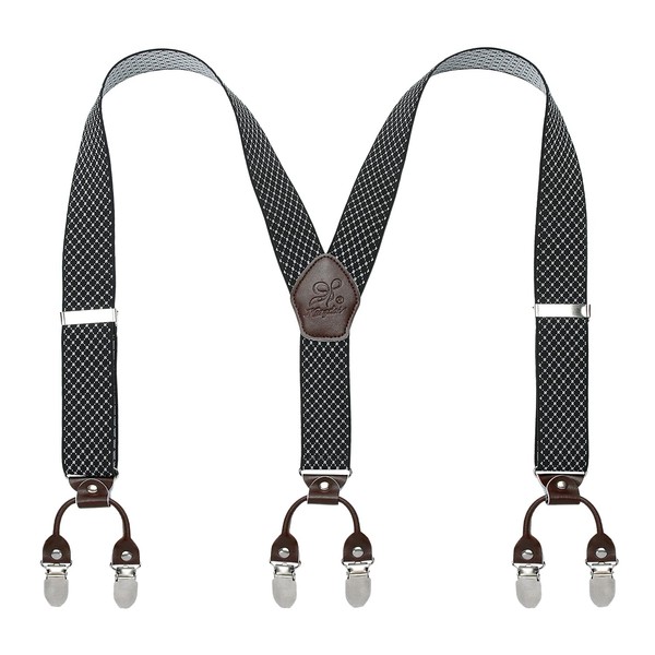 Kangdai Men's Braces, 6 clips, heavy duty, Y back, 10 colours, durable elastic adjustable braces, strong metal clips. - Mr. Black