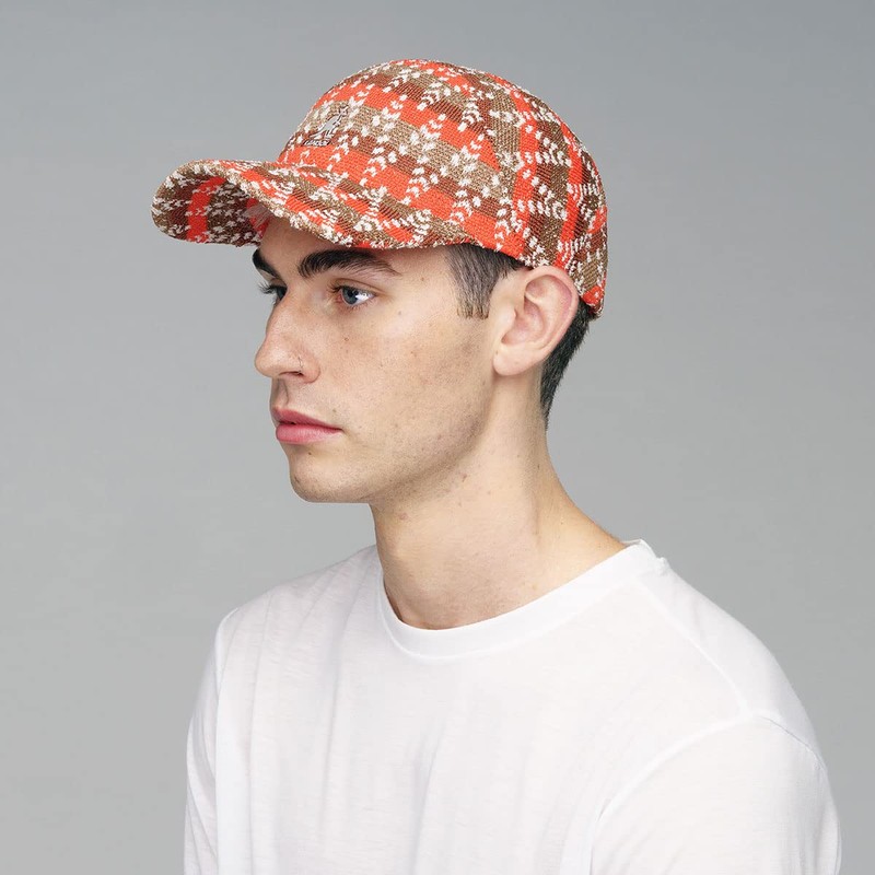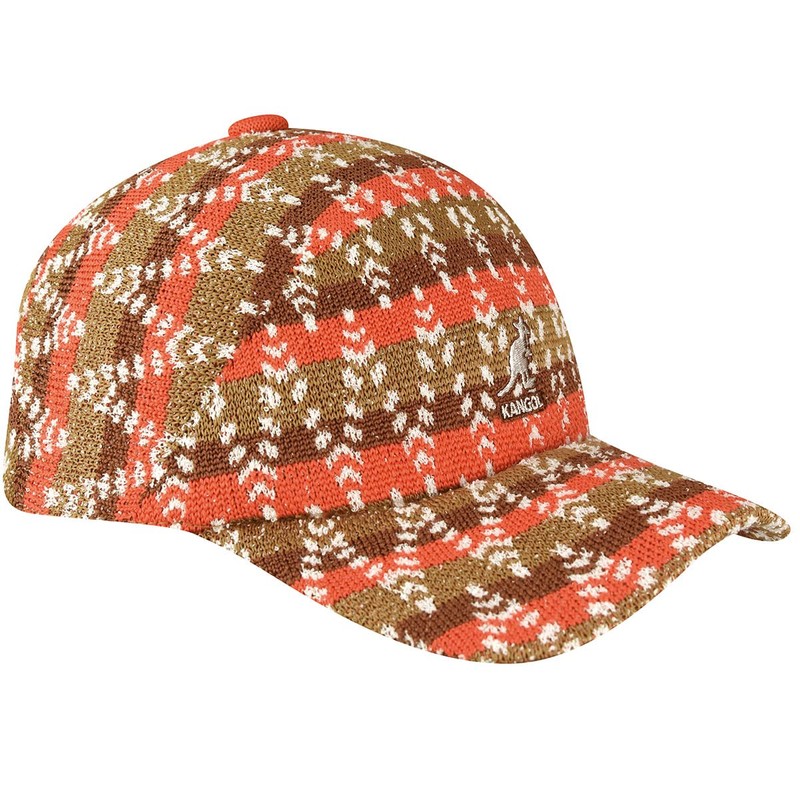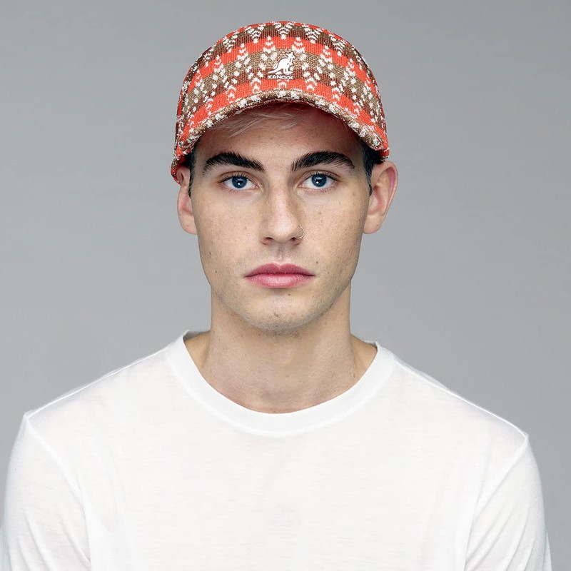 The Groovy Warp Spacecap by Kangol is a fun, groovy new spacecap crafted from a combination of Tropic yarns, Bermuda yarns, and recycled polyester. It features a stripe pattern overlaid with zig zag dash lines done as a jacquard knit. The multiple textures and colors are sure to be a hit with any style chameleon. The soft, stretchy knit sweatband allows for 2 sizes, S/M and L/XL.