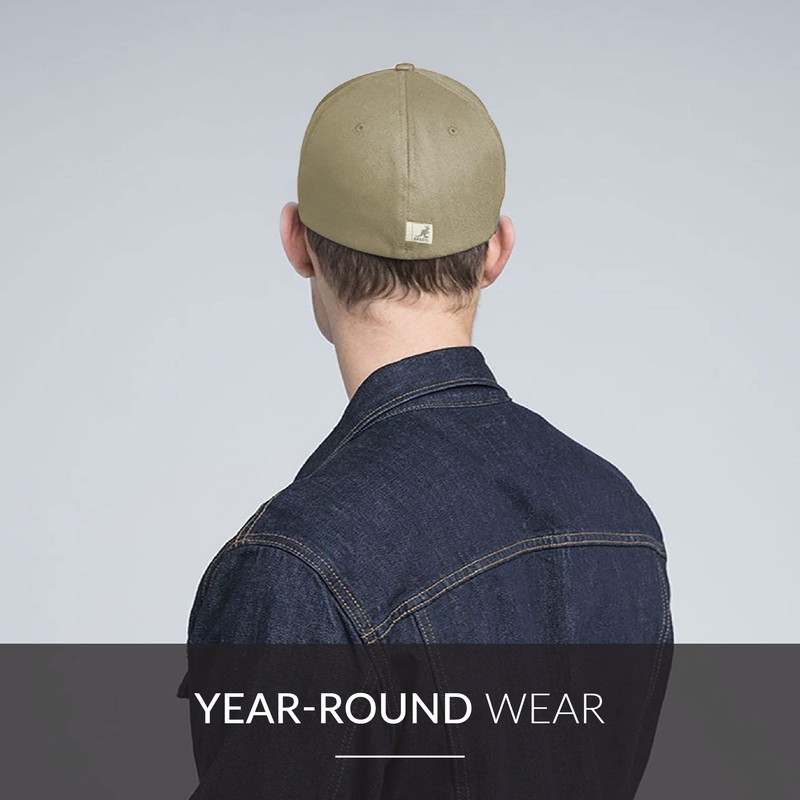 - COMFORTABLE HAT: Each Kangol hat is created with both fashion and comfort in mind. Our flexfit cap is made from 83% acrylic, 15% wool, and 2% spandex. The front of the hat features an eye-catching stitched kangaroo that jumps to life.