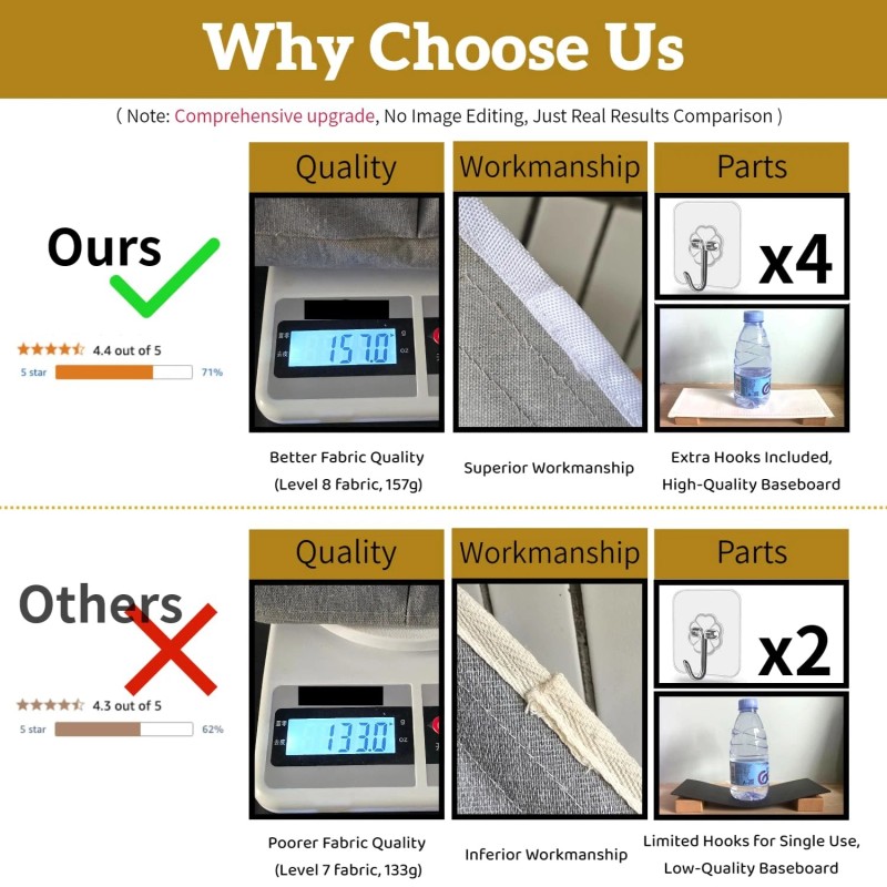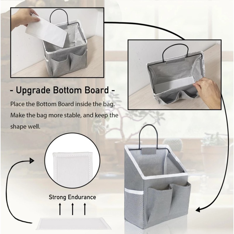 【Upgraded Material】We had upgraded the Cotton Linen Fabric and sticky hook quality, making the wall hanging storage bins more durable to hang. Its inner with waterproof type coating, hanging pockets can be used to store items in the bathroom.