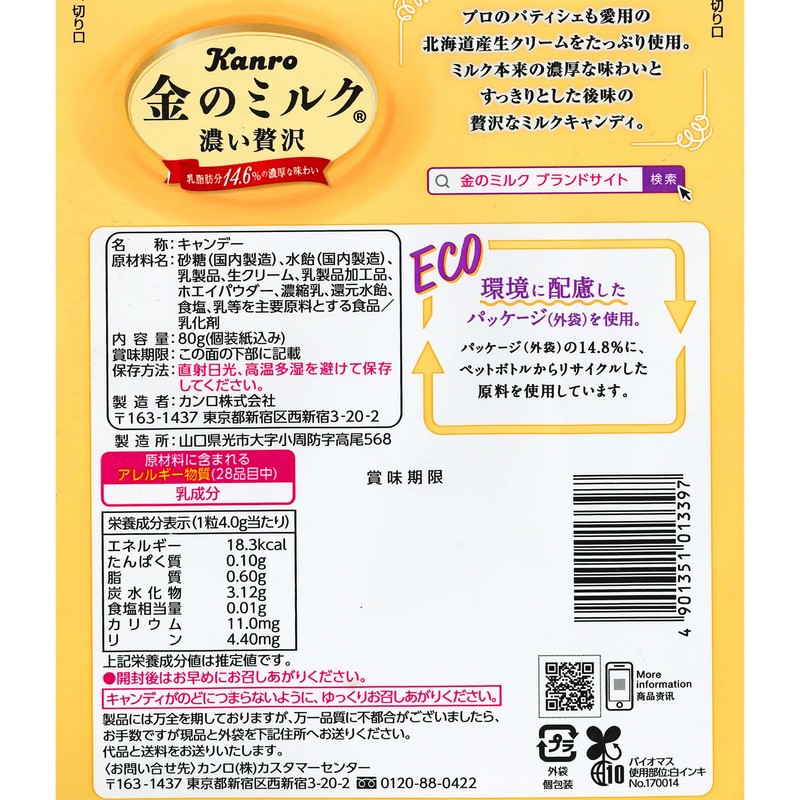Kanro Gold Milk Candy 2.8 oz (80 g) x 6 Bags