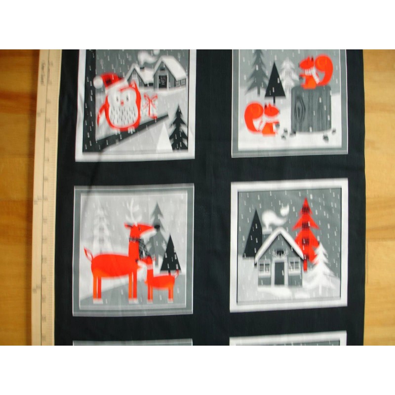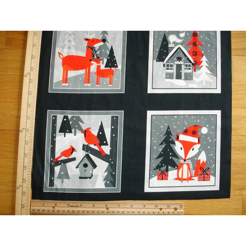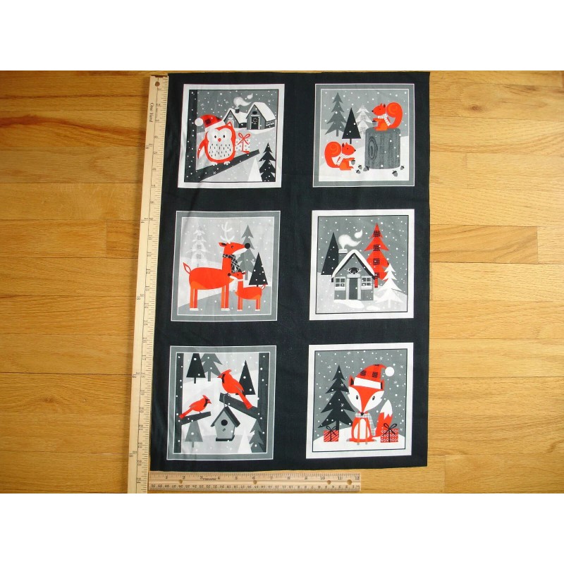 Kanvas Christmas Forest Owl Fox Cardinals Squirrels Deer Cotton Fabric Panel Blocks (6)