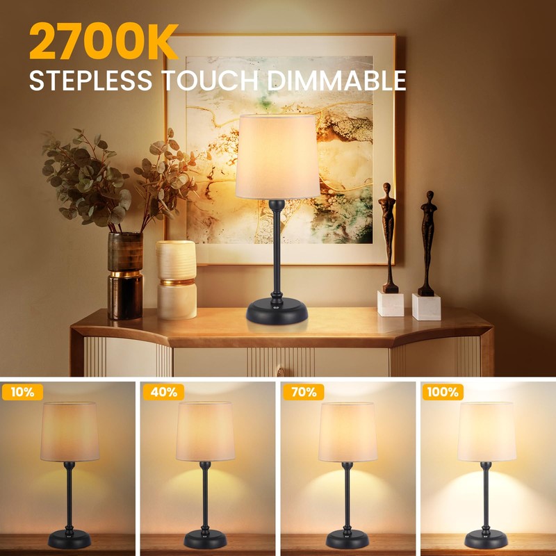 - TOUCH STEPLESS DIMMING: 2700K one click touch dimming, can adjust brightness (5% -100%) by long pressing, with memory function, Turning on can record the brightness when it was last turned off. When the battery level is below 15%, the touch button will flash a blue light prompt, and it also has overcharge protection function, which is safe and reliable.