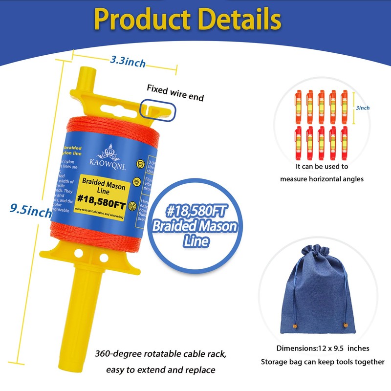 - 【Wide Application】:Suitable not only for professional masons but also for gardening,bundling items, and DIY projects, fishing, boating, masonry, crafts, and more,this mason line string can perform excellently in these environments.