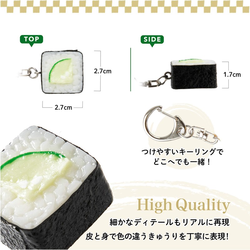 - The realistic sushi key ring is a key ring that you can carry anywhere. It looks like the real thing. It is sure to catch people's eyes on you. The compact size of 2.4 inches (6 cm) makes it cute enough to wear a lot