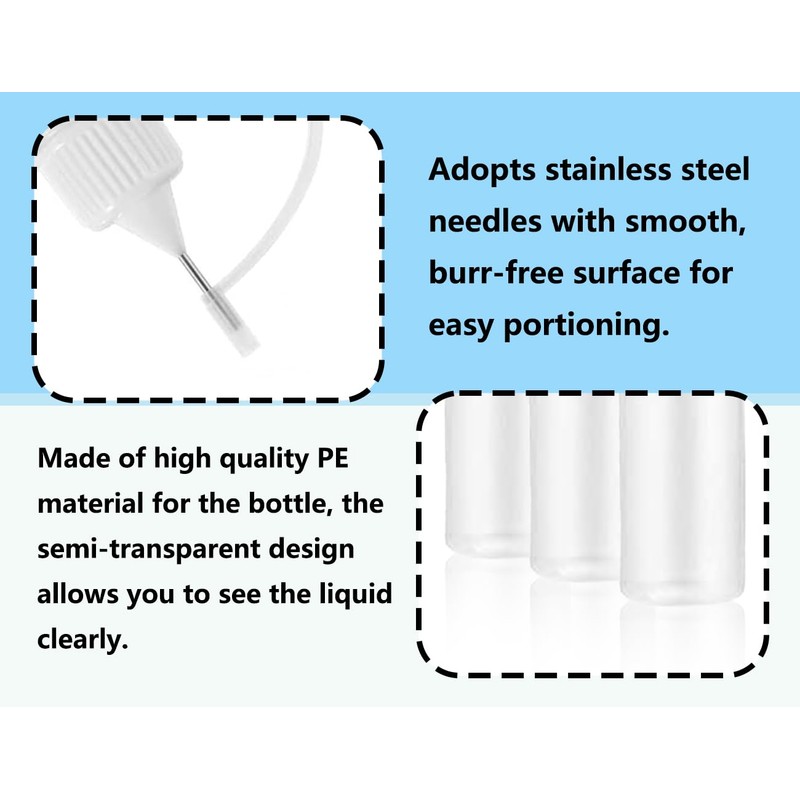 • High Quality Material This needle tip applicator bottle is made of high quality PE material and is sturdy and durable, making it perfect for repeated use.