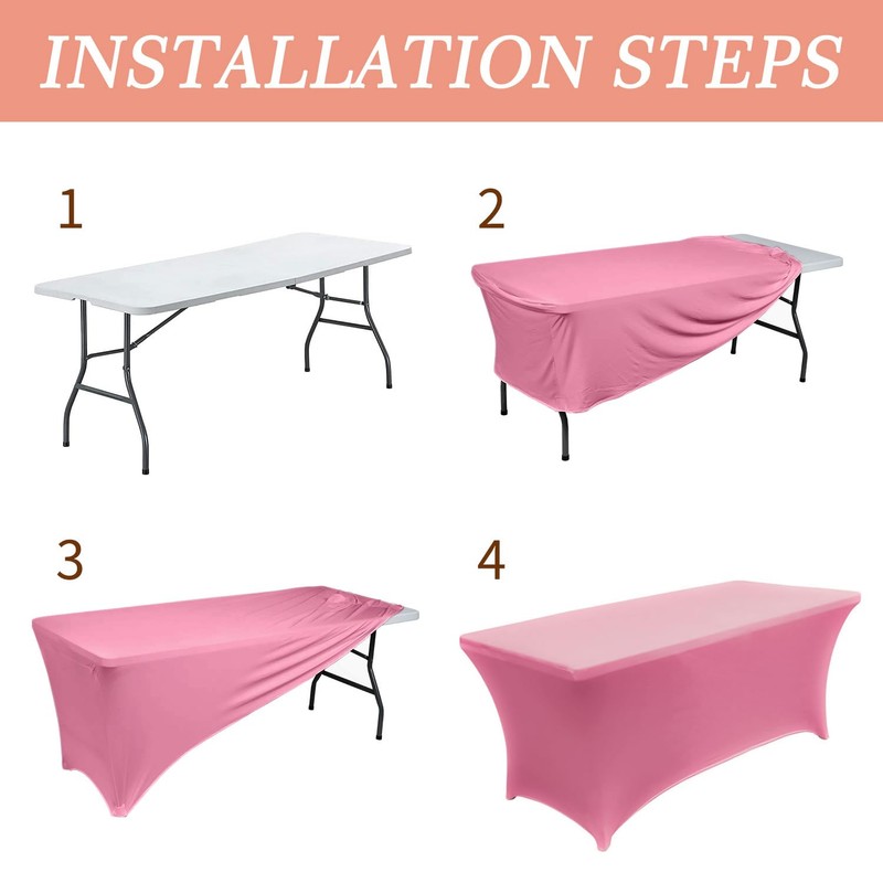 Kapwall 6ft table cloth, Pink Spandex Tablecloth Tight, Fitted, Washable and Wrinkle Resistant Stretch Rectangular Patio Table Cover for Event, Wedding, Banquet & Parties. (1PCS)
