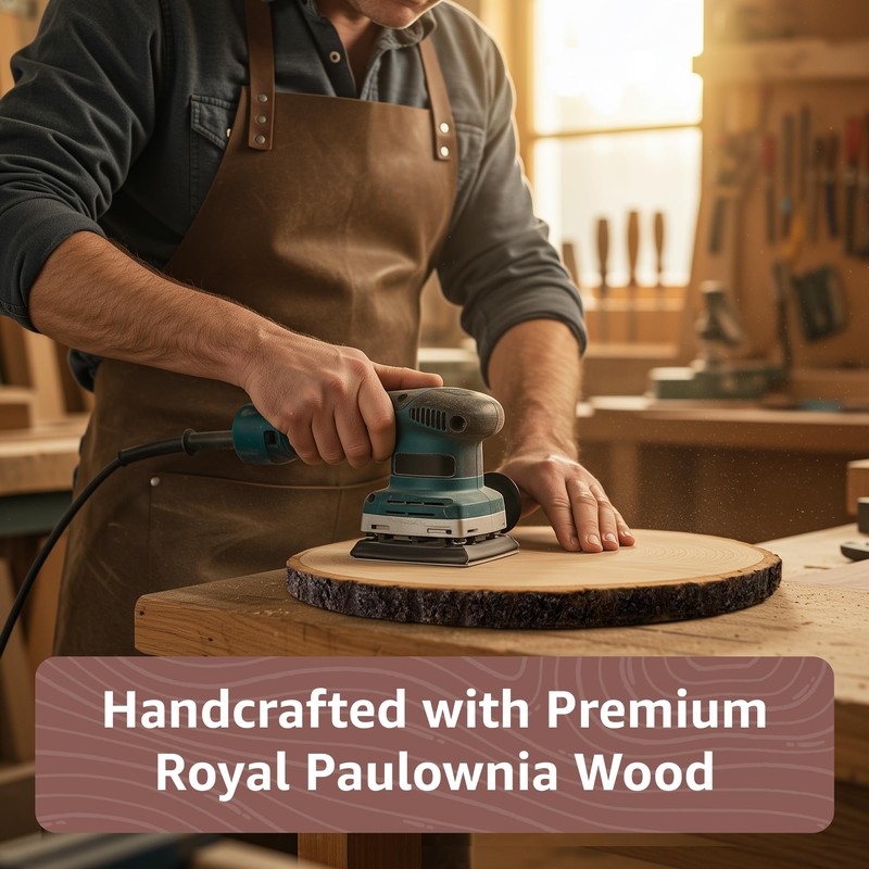 Lightweight, natural and unfinished, these beautifully presentable large wood slices with bark exterior can be used for any occasion or rustic home country decor.Showcase your own style and unique way of decorating to friends and family with this lovely set of wooden slices!Add that magical touch to your nice cozy home or warm welcoming, natural feel to any special event!The stylish 100% food-grade royal paulownia wood chargers add a touch of country charm and delight to any table, and make an attractive presentation board for cheeses and other food items.Unlike other wood rounds that are often rough or moldy, Karavella premium quality wood slabs are specially sanded and freshly clean cut to ensure they arrive in perfect condition.Durable, long-lasting and re-usable for years, our kiln-dried wood slices are left untreated and unsealed in their raw natural state to allow you to finish them however you'd like!Due to the natural state of the wood, minor cracks may be present in the slices. Minor bark missing may occur as the wood is in it's natural state.Well-presented in a white logo printed box, these wooden slabs come securely packed with protective wrapping, complete with helpful decorations ideas and suggestions for finishing the wood.Perfect to use for wedding table decor, plate chargers, party centerpieces, tree trunk cake stands, cheese boards or as wood pieces for crafts and painting projects!Product color: Light colored wood with brown contrasting bark rimProduct dimensions: .6-inch thickness, 11-13 inch diameter (slices may vary due to natural cut of tree)At Karavella we strive to offer our customers beautiful homeware that provides both comfort and relaxation with a modern rustic touch.If for whatever reason you don't love our wooden centerpieces for tables, simply get in touch and we'll happily provide you with a full refund or replacement.