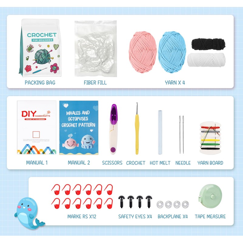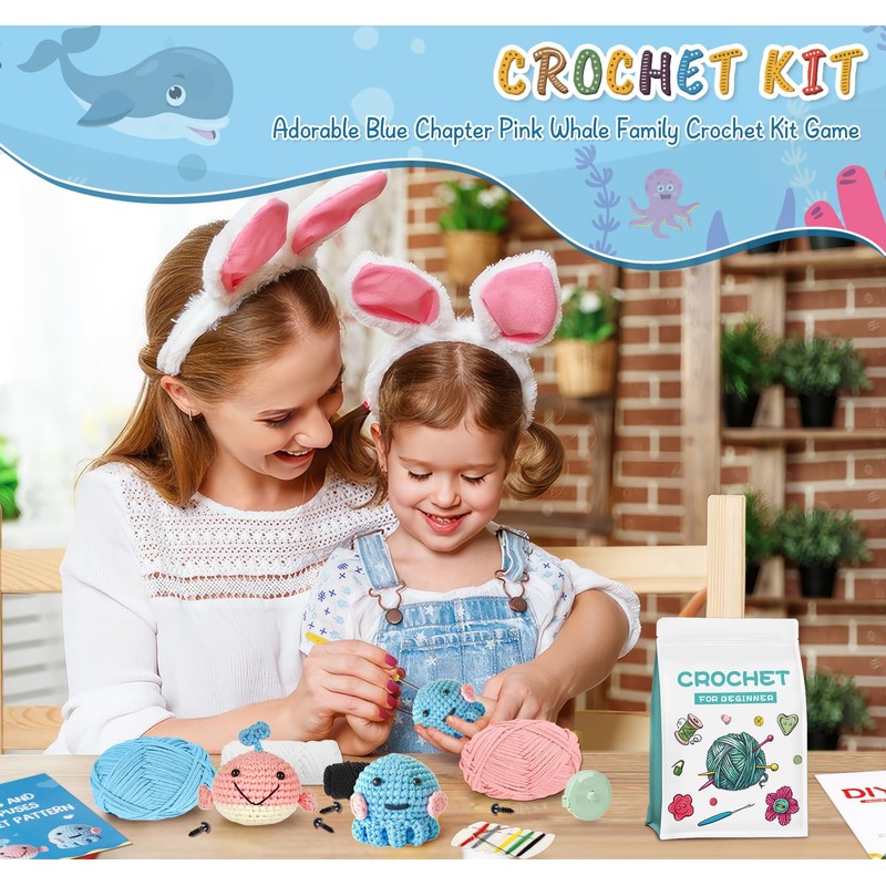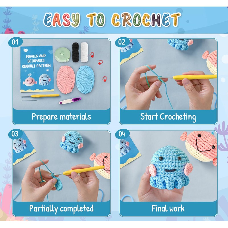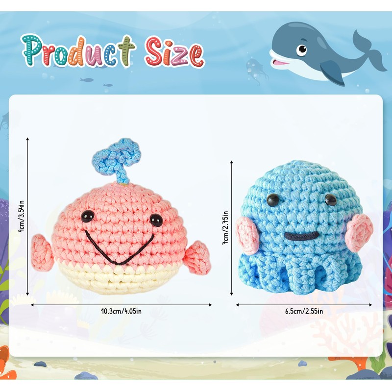 KARBRING Beginners Crochet Kit, Whale&Octopus Crochet Kits for Beginners Adults, Crochet Animals Set with Step-by-Step Video Tutorials, Learn to Crochet
