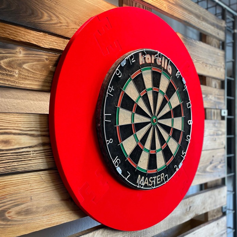 - The red 4-piece surround protects the wall surface, darts and the floor from bouncing or misthrown darts