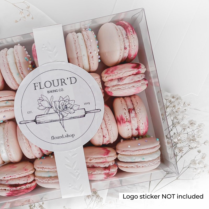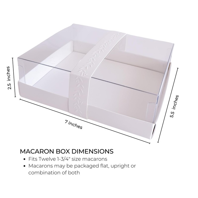 Karentology 20 Pcs Macaron Presentation Gift Boxes with Embossing for Treats, Desserts, Fancy Cookie, White Tray Chacuterie Bakery Packaging