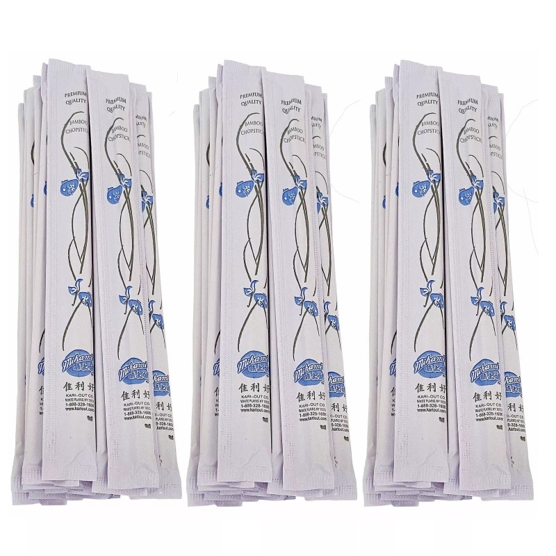 Kari-Out Disposable Round 8.5" Bamboo Chopsticks, Individually Wrapped Separated - 30 Pair