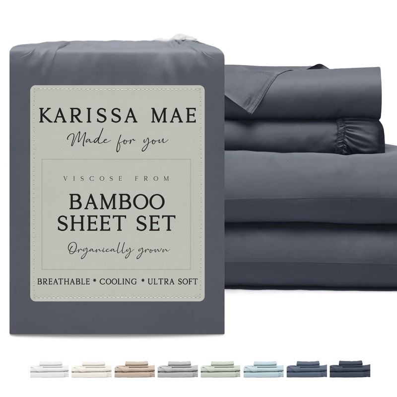 KARISSA MAE Cooling Bamboo Viscose King Sheet Set | 100% Organically Grown | 18” Deep Pocket | Silky, Soft, & Hypoallergenic | with Organizer Band & Elastic Corner Straps [Charcoal Grey]