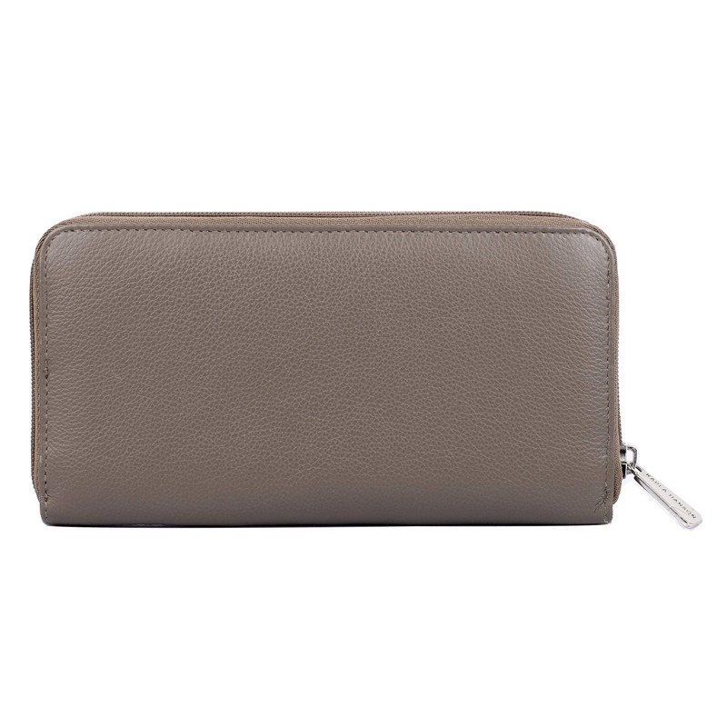 The comprehensive organization of our KARLA HANSON Women's Wallet meets the convenience of a continental in this secure zip-around design. Durable yet refined in textured pebble leather, it allows you to see everything inside at a glance. The understated sleek design exudes unparalleled feminine sophistication. Built in RFID defender technology protects your identity and credit cards. Includes one wallet.