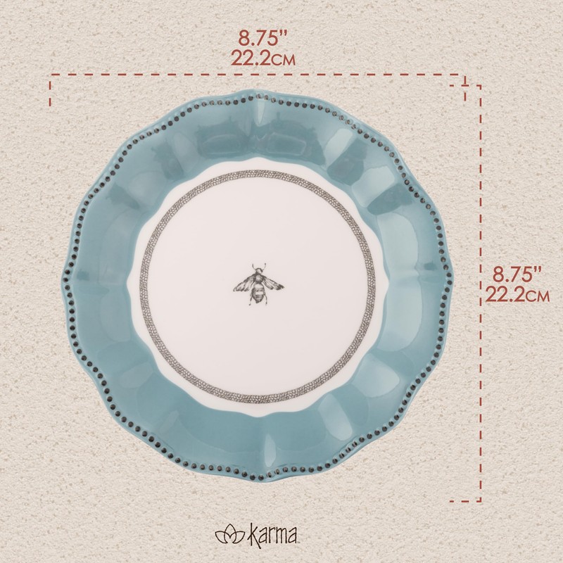 Karma, 8.75 inches Melamine Salad Plates Set of 4, Reusable Dishwasher Safe Plates for Outdoor and Indoor, Bee