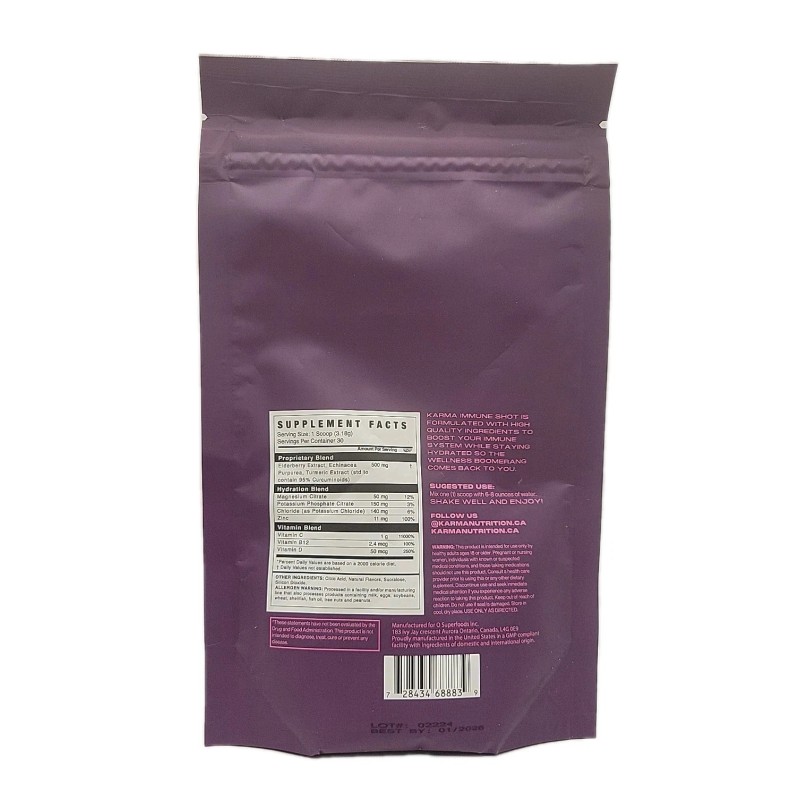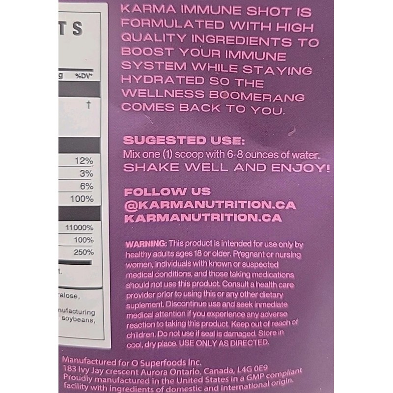 Karma Berry Razz Immunity Shot Elderberry, Echinacea, Tumeric Ect. 30 Servings