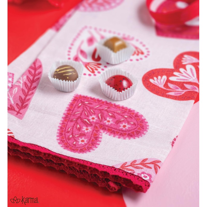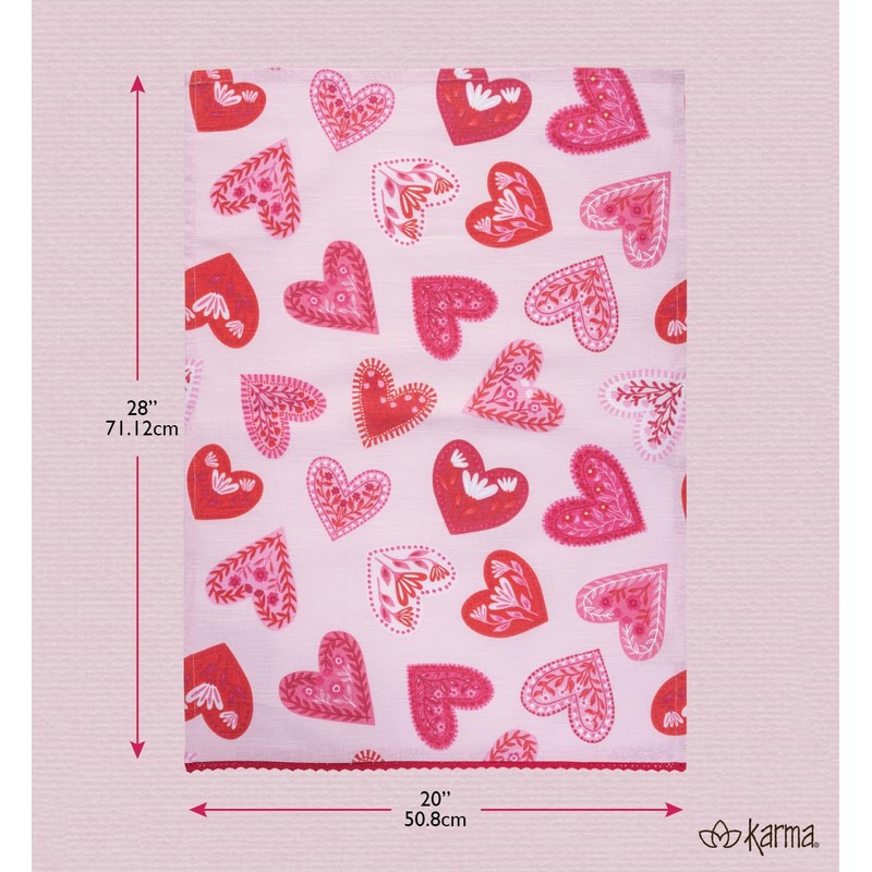 Karma, Eclectic Tea Towel, 100% Cotton Hand Towel for Kitchen – Housewarming Gift for Hostess Boho Kitchen Home Décor, Hearts