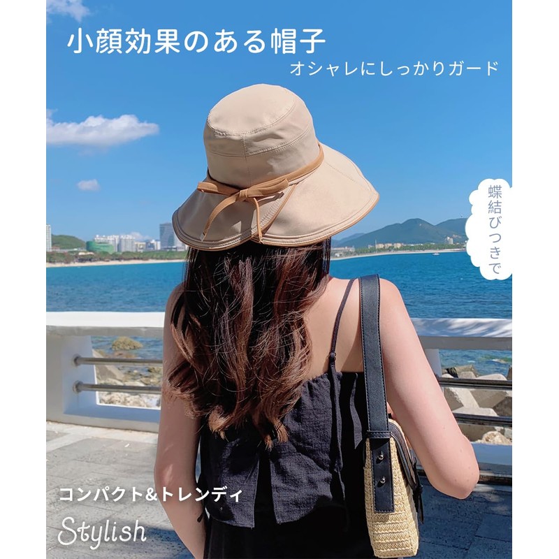 Karsaer G0077 Women's UV Protection, Spring and Summer, Bowknot Hat, Foldable, Wide Brim, Walking, Biking, Travel, Drawstring, Includes Chin Strap, Size Adjustable, Ultraviolet Rays, Near Infrared,