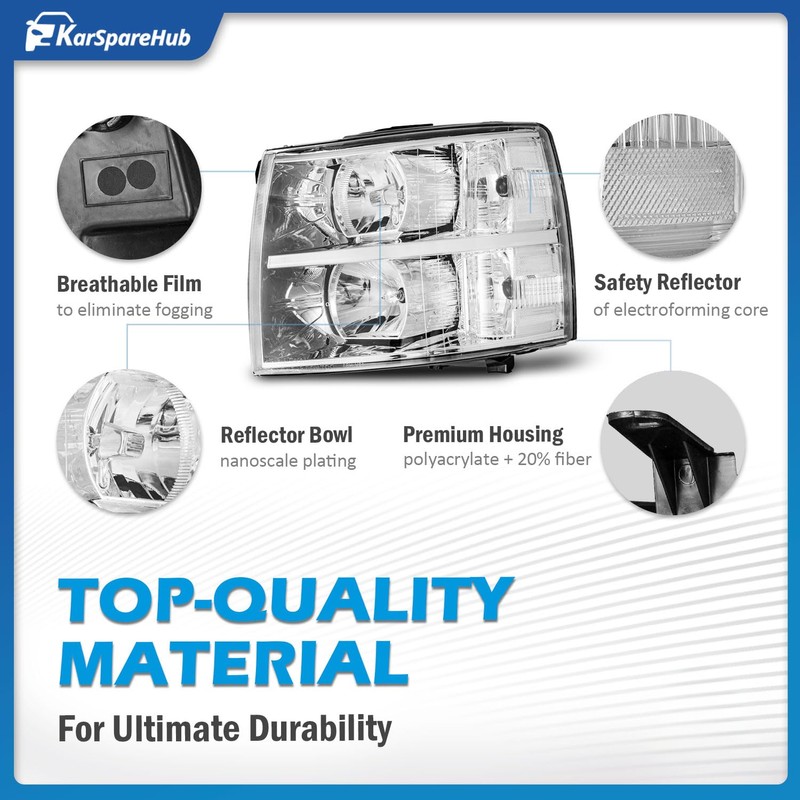 KarSpareHub Headlights W/Bilbs for 2007-2013 Chevy Silverado 1500 for 2007-2014 Silverado 2500HD 3500 Headlamp Replacement, Driver & Passenger Side