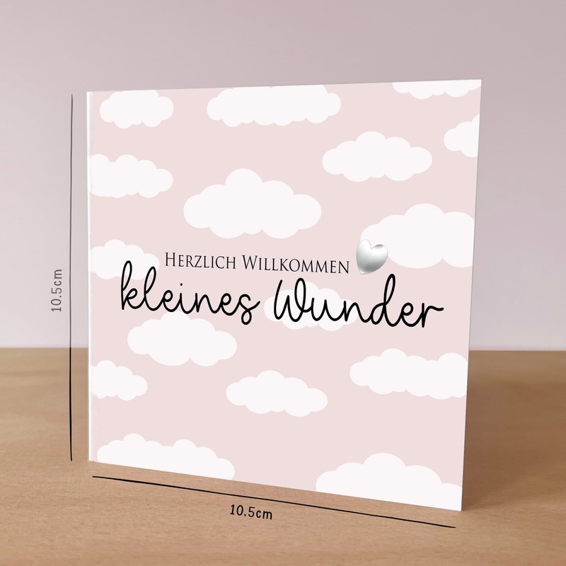 - Wunderschöne Klappkarte als Geschenk zur Geburt im süßen Wolken Design und Spruch: Herzlich Willkommen kleines Wunder.