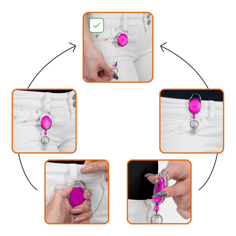 The ID yo-yo is a very practical alternative when attaching card sleeves and is often used where a name plate, a company ID, a visitor card or a normal ticket must be at hand.