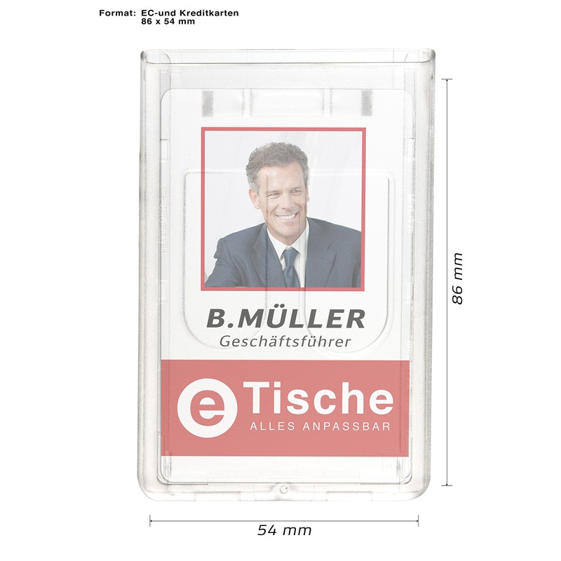 - Card size: 54 x 86 mm (EC and credit card size)