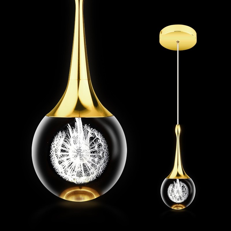 - 馃挕銆怣aterials銆慣his Dandelion ceiling light fixture has premium 3-dimensional crystal with a chrome finish, Globe shape pendant with gold color finished by brushed brass, 3W, 3000K warm light,which looks very comfortable and will not dazzle the eyes. reducing operating costs up to 80%. create the perfect atmosphere for you. Perfect wall decorative for porch,kitchen island, hallway, dining room, bedroom, living room, coffee, bar, club, loft.
