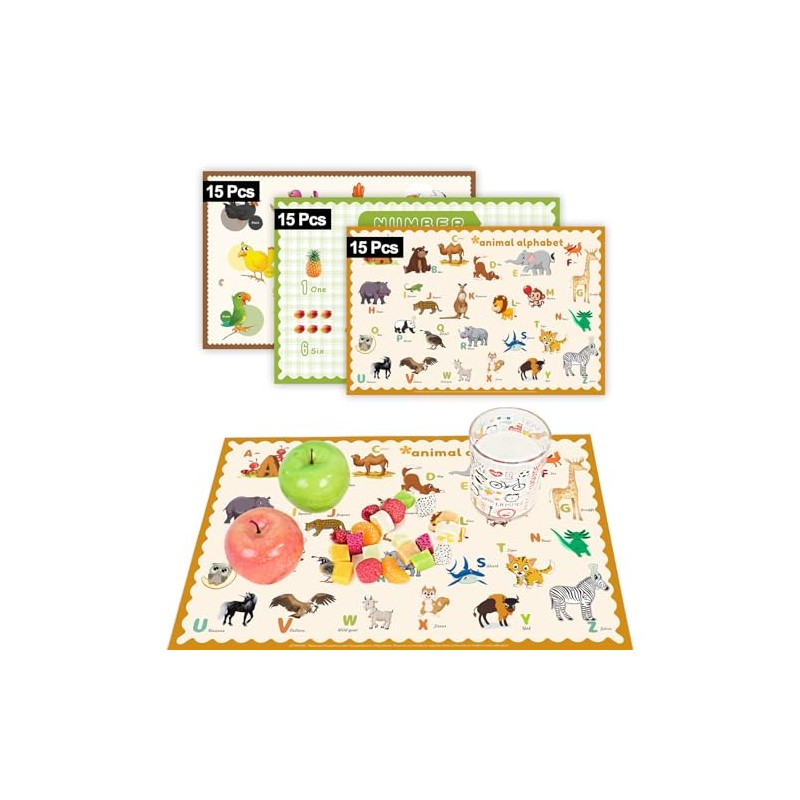 KAshack 45 Pack Sticky Disposable Placemats for Baby & Toddlers,Toddler Placemat 12"x18" Kids Table Mat for Party, Picnic Table, Restaurants Dining Table Travel Essentials for Toddlers with 3 Designs