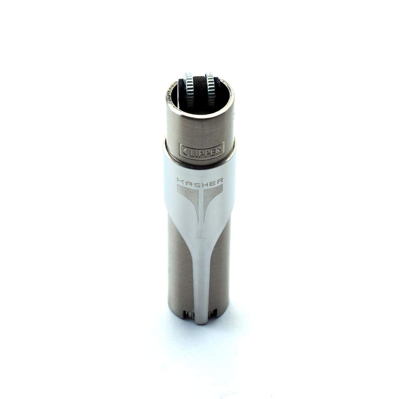 - DURABLE & HIGH-QUALITY MATERIAL - It comes with the metallic refillable lighter for higher durability and stainless steel kasher tool with a thickness of 0.8mm that fits snugly onto any lighter, making it stand out from other lighter accessories. Advised to use a lighter without a plastic sheet.