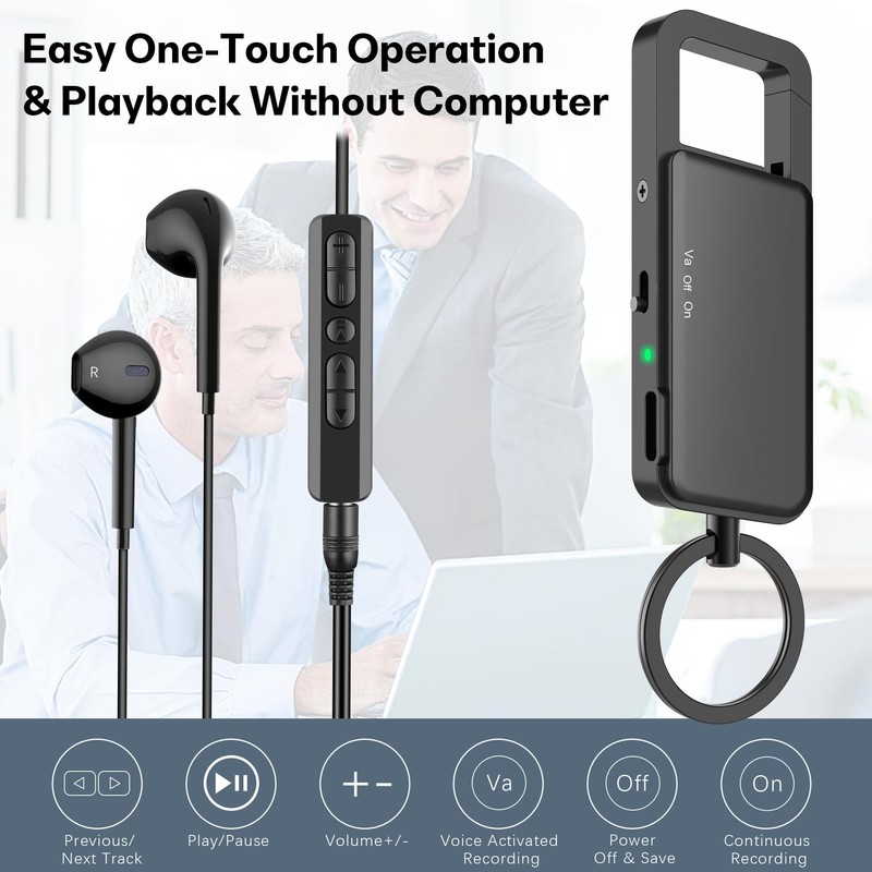 - Compact and Easy to Carry: Weighing only 1.51 ounces, this small voice recorder attaches effortlessly to your keychain, bag, or lanyard. Its sleek design makes it suitable for daily use in various settings, from classrooms to business meetings. It's also an excellent gift for those who value organization and convenience in their daily tasks