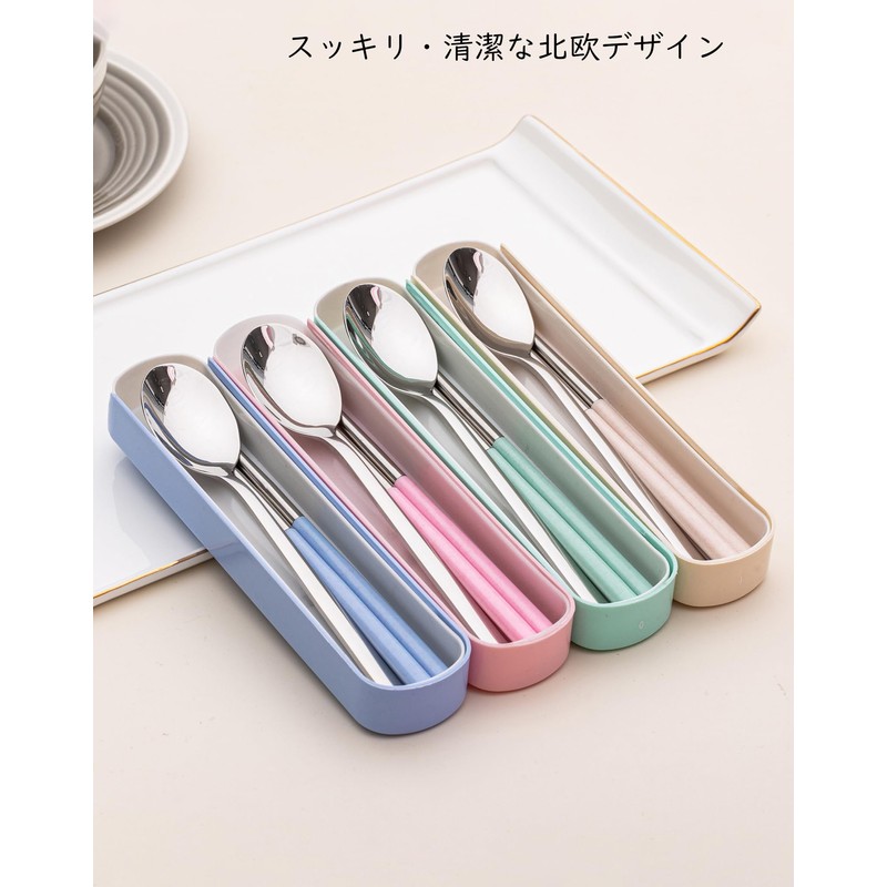 KASHIBAKER Chopsticks Set, Spoon Combination Set, 2 Pieces, Case Included, Cutlery Set, Bento Box, Convenient to Carry, Chopsticks Set, Kids, Adults, Spoon Chopsticks Set, Dishwasher Safe, Pink
