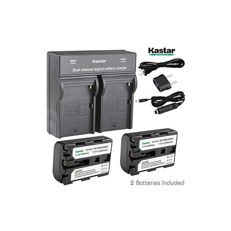 Kastar Dual Smart Fast Charger & 2 x Battery for NP-FM50 NP-FM55H NP-QM51 and DSC-F707 DSC-F717 DSC-F828 DSC-S30 DSC-S50 DSC-S70 DSC-S75 DSC-S85 DSLR-A100 MVC-CD200 MVC-CD250 MVC-CD400 MVC-CD500